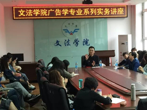 9月12日下午,我校88级社会科学系政法专业校友、深圳市东北林业大学校友会会长、深圳市该亚文化传播有限公司总经理仇笑先生应邀在文法学院二楼会议室进行了广告学专业实务分享会。文法学院副院长于景辉老师、广告学专业副主任宫立明老师及广告学专业教师、学生参加本次分享会。