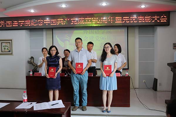 为纪念中国共产党成立96周年,继承和发扬党的优良传统和作风,提高党员同志们的服务意识,营造拼搏进取、创先争优的浓厚氛围。6月28日下午,外国语学院在文博楼1019会议室召开了学院2015—2017年度先优表彰大会暨庆“七一”毛泽东诗文朗诵比赛。外国语学院院长王丹、党委书记杨滨章、副院长孙爽、党委副书记、副院长李想、全体教工及部分学生党员参加了本次活动。活动由院党委副书记、副院长李想同志主持。