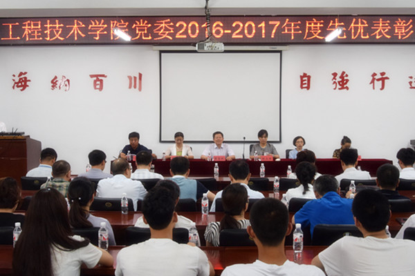 2017年6月28日下午2时,工程技术学院党委在工程楼915会议室召开了庆祝建党96周年暨“两优一先”表彰大会。学院两委委员、教工及学生党支部书记、党员代表100余人出席了本次表彰大会,大会由学院党委副书记汪永涛主持。