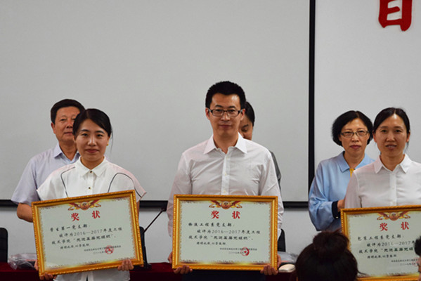 学院院长董喜斌宣读了学院党委表彰决定,学院党委委员为获奖的3个先进基层党支部,2名优秀党务工作者,15名优秀党员颁发了荣誉证书并合影留念。
