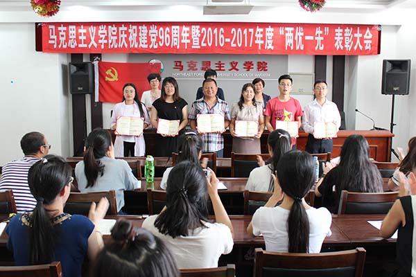 随后召开了马克思主义学院庆祝建党96周年暨2016-2017年度“两优一先”表彰大会。由王越芬副院长宣读了中共东北林业大学马克思主义学院总支委员会关于表彰2016-2017年度优秀党员、优秀党务工作者和先进党支部的决议。授予于传洁、杨丽艳、汪金英、林美群、侯典举“优秀共产党员”称号;授予李晓兰“优秀党务工作者”称号;授予马克思主义中国化研究学科党支部、思想政治教育学科研究生党支部“先进党支部”称号。学院领导为“优秀共产党员”、“优秀党务工作者”和“先进党支部”等获奖的同志和集体颁发了荣誉证书。