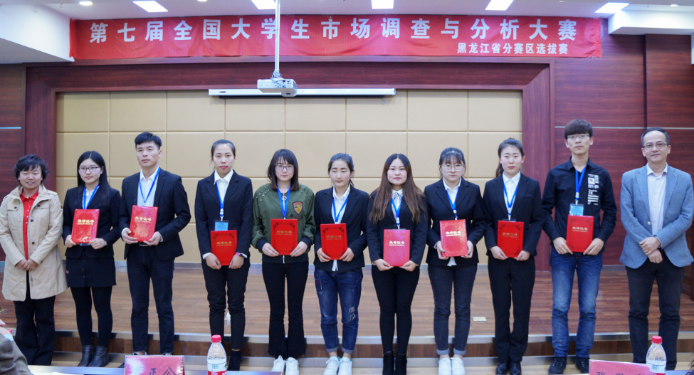 经过了一天的激烈角逐,共决出一等奖9名、二等奖8名、三等奖8名,有三支队伍获得晋级国赛资格。我校经济管理学院耿玉德副院长向大赛致闭幕词,第七届市场调查与分析大赛黑龙江赛区选拔赛顺利闭幕。