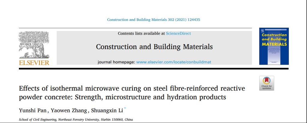 近日,我校土木工程学院青年教师李双欣带领由土木工程学院本科生组成的研究团队,以东北林业大学为第一单位在国际权威学术期刊《Construction and Building Materials》(中科院1区,影响因子6.141)上发表了题为“Effects of isothermal microwave curing on steel fibre-reinforced reactive powder concrete: Strength, microstructure and hydration products”的论文,揭示了恒温微波养护对超高性能混凝土力学性能、微观结构、水化产物等方面的影响,为缩短超高性能混凝土养护时间,提高养护效率提供了重要依据。李双欣为论文通讯作者,本科生潘云石和张耀文分别为论文第一作者和第二作者。