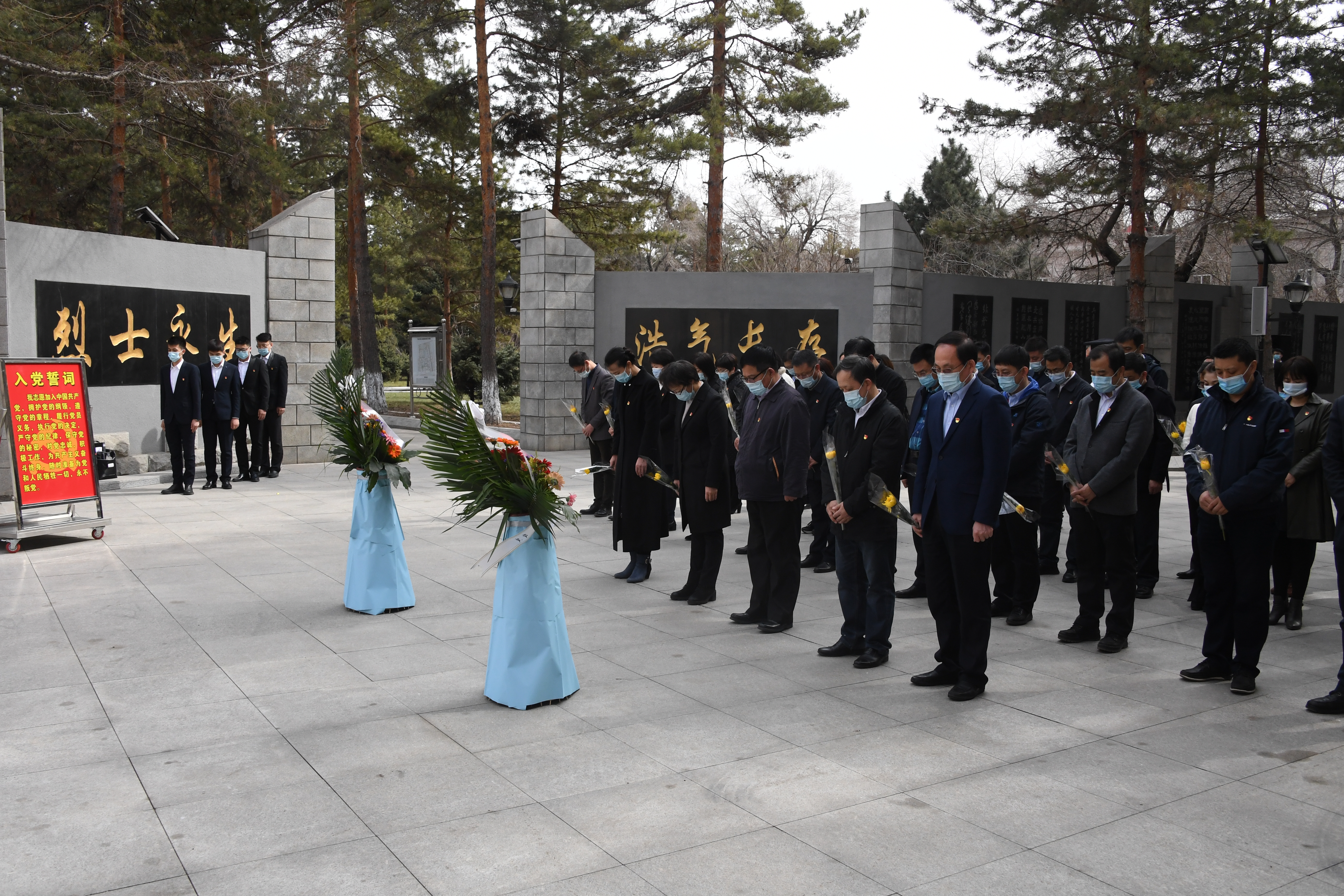在烈士纪念碑前,全体人员静穆肃立,进行了庄重的祭扫仪式,怀着无比崇敬的心情向革命英烈敬献花圈、花束,默哀、鞠躬,表达对英烈们的深切哀悼和崇高敬意。随后,张志坤书记带领全体党员在党旗下、纪念碑前,重温入党誓词,以铮铮誓言表达对革命英烈的无限缅怀和秉承遗志、砥砺奋进的决心。