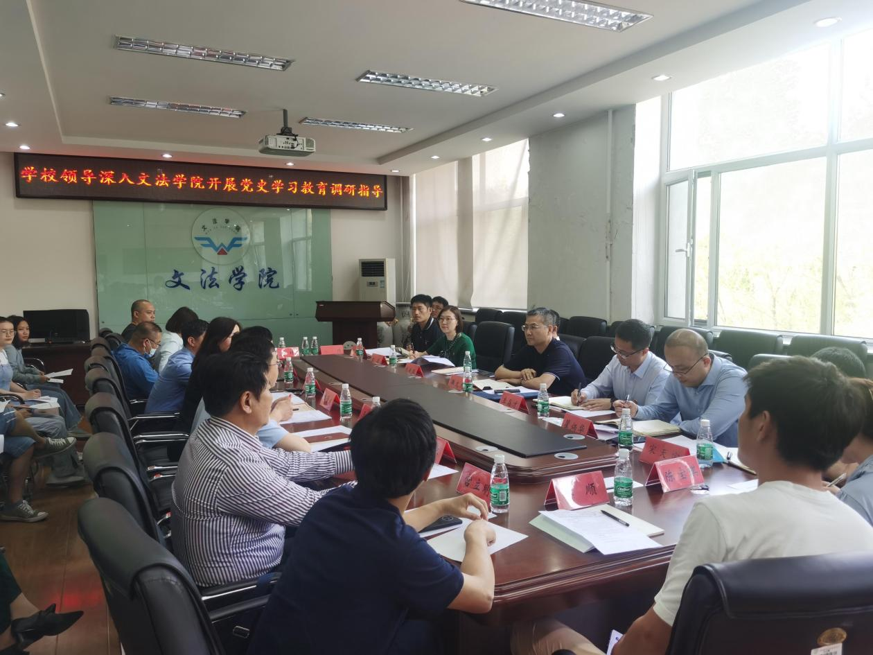 5月21日下午,党委常委、副校长雒文虎深入文法学院开展党史学习教育调研指导。文法学院领导班子、教师各层面代表、学生代表参加调研座谈会,学校党史学习教育领导小组办公室实践组成员、学生处副处长、武装部副部长瞿炳华主持调研座谈。