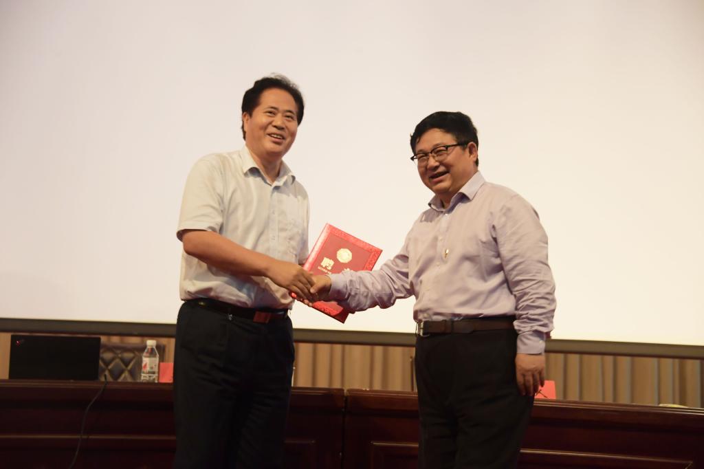 报告开始前,党委书记张志坤向秦安教授颁发东北林业大学客座教授聘书。