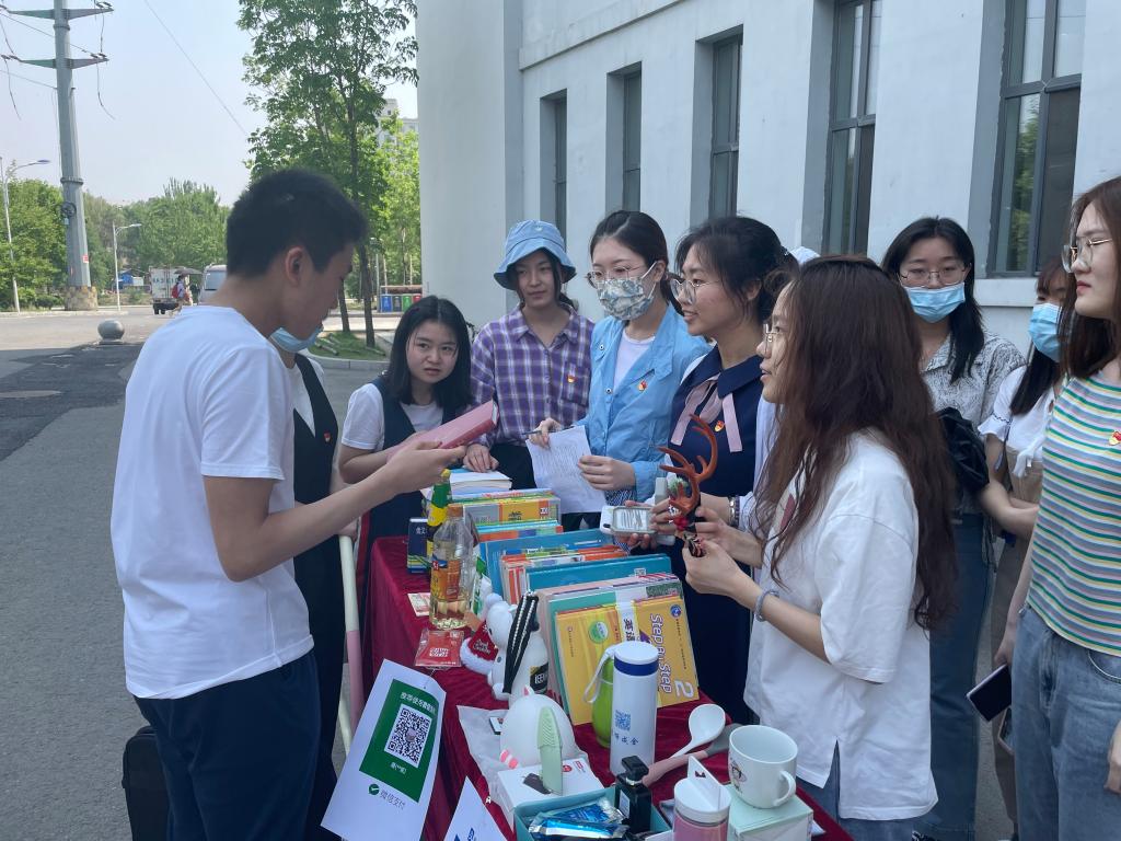 5月21日,外国语学院学生党支部在颐丰园门口举办“施小爱·汇大爱”外语学子募捐义卖活动。学院第43期预备党员培训班班主任高敏、学生党支部书记李欣书及学生党员共30余人参与本次活动。