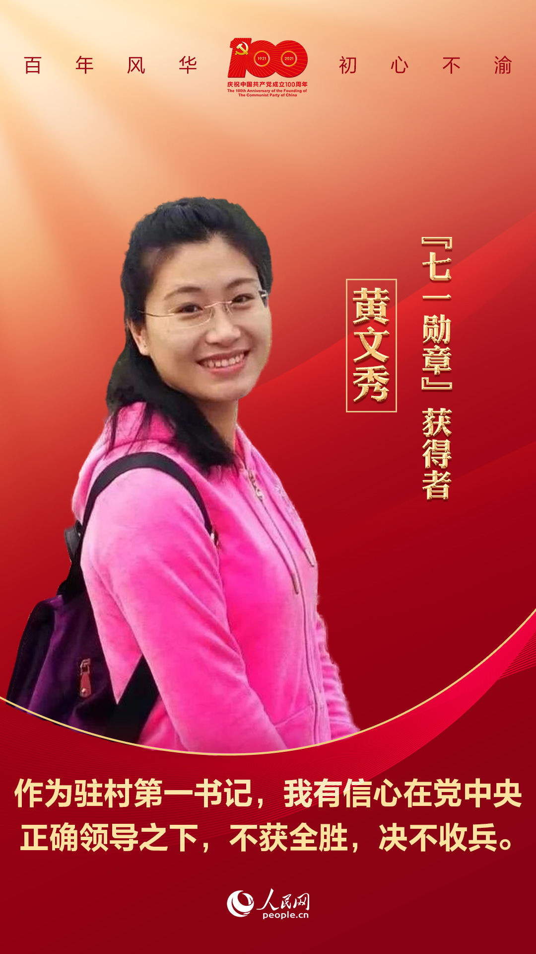 6月29日,黄茂益赴京参加庆祝中国共产党成立100周年“七一勋章”颁授仪式。他代表妹妹黄文秀领取“七一勋章”后,庄严写下了入党申请书。“黄文秀是我的好妹妹,也是我的好榜样。”黄茂益说,他渴望成为党组织的一分子,像妹妹一样为共产主义事业贡献力量。