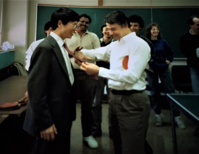 王洪学读博士第一年进组时,组内共有28名研究生和博士后。每个人的实验资源很有限,只能同时做一个化学反应。到了第二年,因为王洪学研究工作出色,Percec教授给他安排了在组内仅有的一个可以同时做四个反应的实验室,他倍加珍惜这份资源。除了每周日下午4点至深夜的组会时间外,每天早上8点半到晚上10点,王洪学都雷打不动地在实验室里做实验,然后坚持写作到凌晨1点。他无论何时都带着一本有机化学手册,有新的想法、新的路线,就抓紧开展新结构单体的合成和聚合实验。因为全身心投入到科研事业中,热爱体育的王洪学完全没有时间看电视。体育“瘾”上来了,他就只好在做实验的间隙打开收音机,收听电波中传来的喜爱的橄榄球队比赛情况。