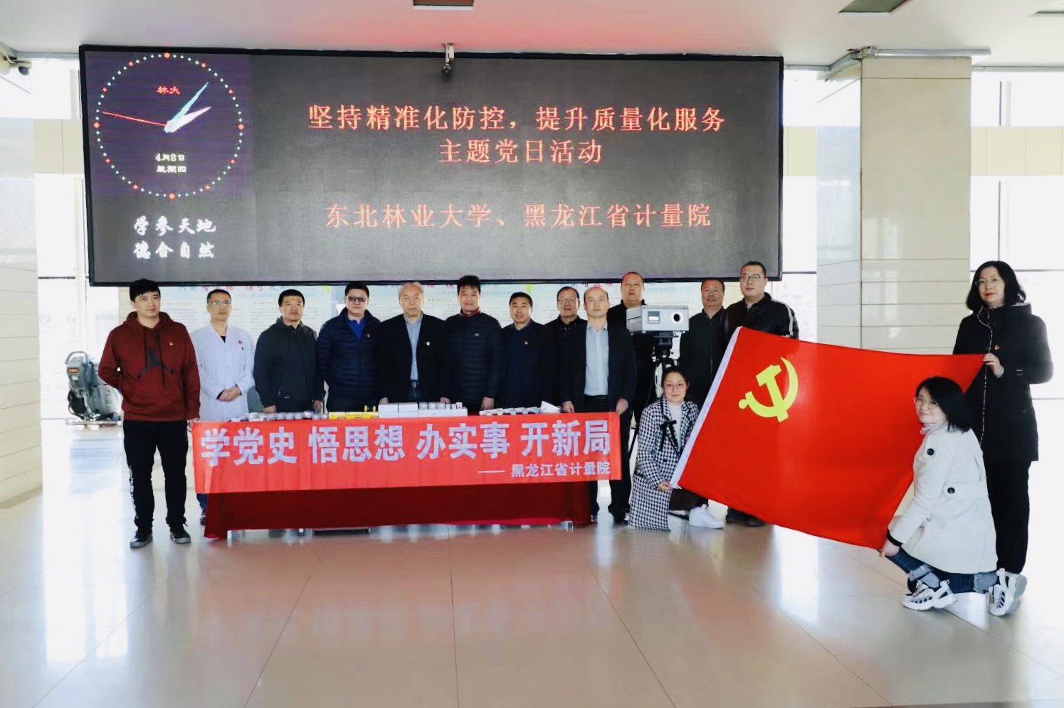 4月8日,黑龙江省计量院曹曙光院长、薛巍副院长携计量技术专家、海康威视技术顾问一行到我校,与后勤保障部校园服务党支部联合开展了“坚持精准化防控,提升质量化服务”主题党日活动。