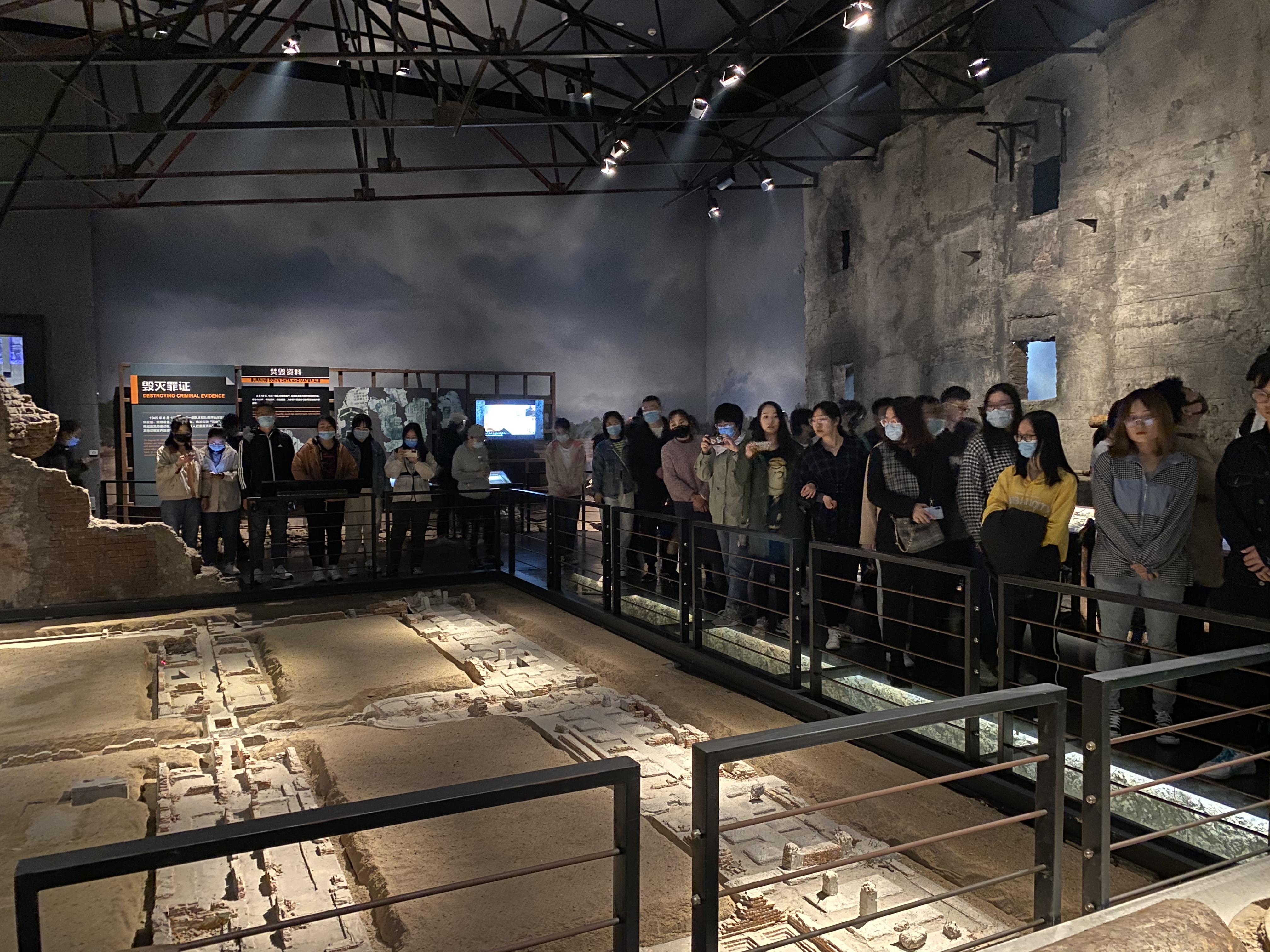 随后,大家又参观了侵华日军第七三一部队的室外遗址,看着断壁残垣的罪证遗址,当年的残酷暴行仿佛历历在目。据讲解员介绍了解到,仅在1939年至1945年这段时间里,至少有3000人在试验中被残杀。在细菌战过程中,至少有30万人受到屠杀和残害。