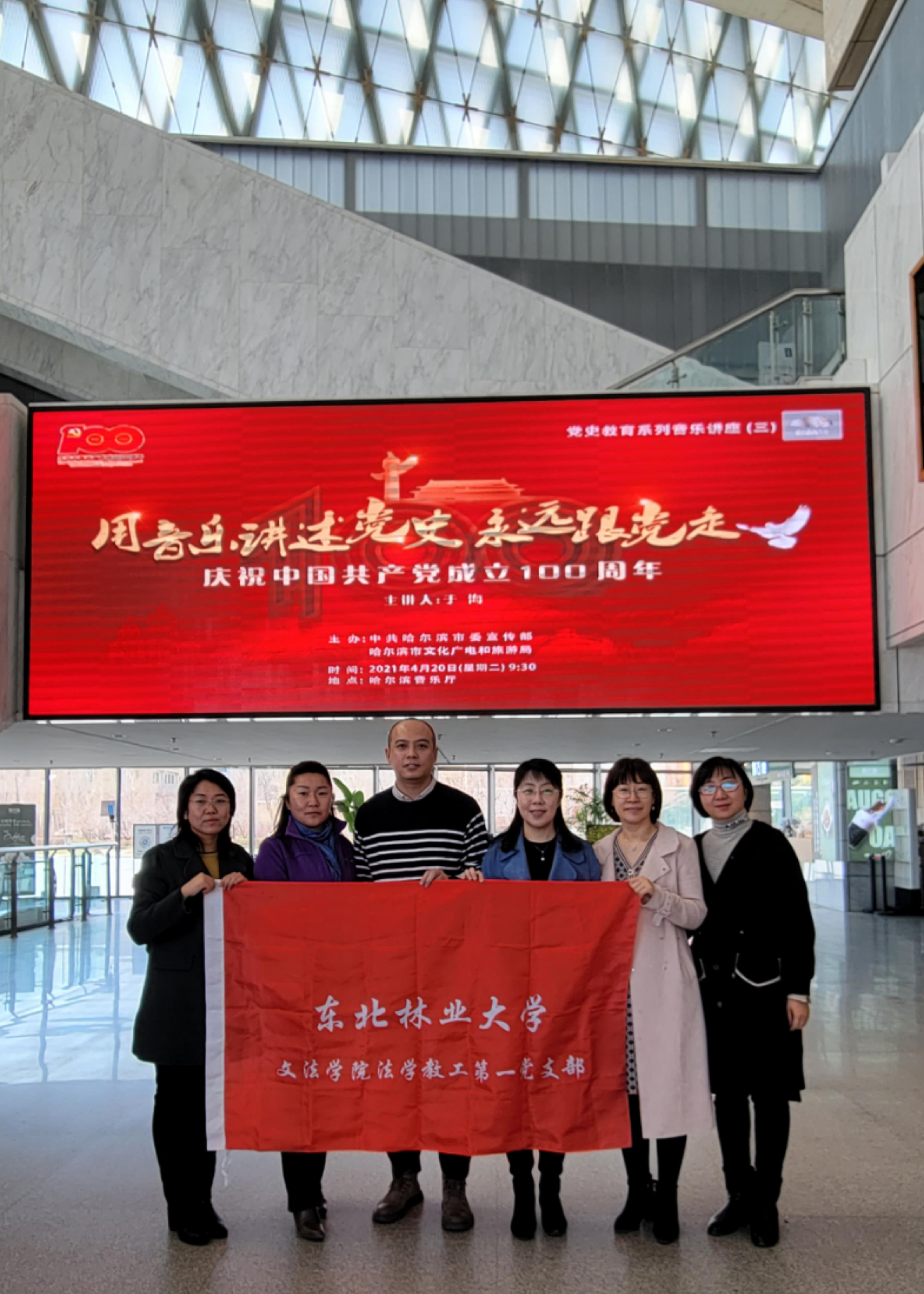 为响应习近平总书记必须把党的历史学习好、总结好的号召,加深党员学党史的感悟力,引导广大党员知行合一、学以致用。4月20日,文法学院法学教工第一党支部开拓党史学习的新路径,组织支部教师参加了在哈尔滨音乐厅举行的“用音乐讲述党史,永远跟党走----庆祝中国共产党成立100周年系列音乐讲座”活动。
