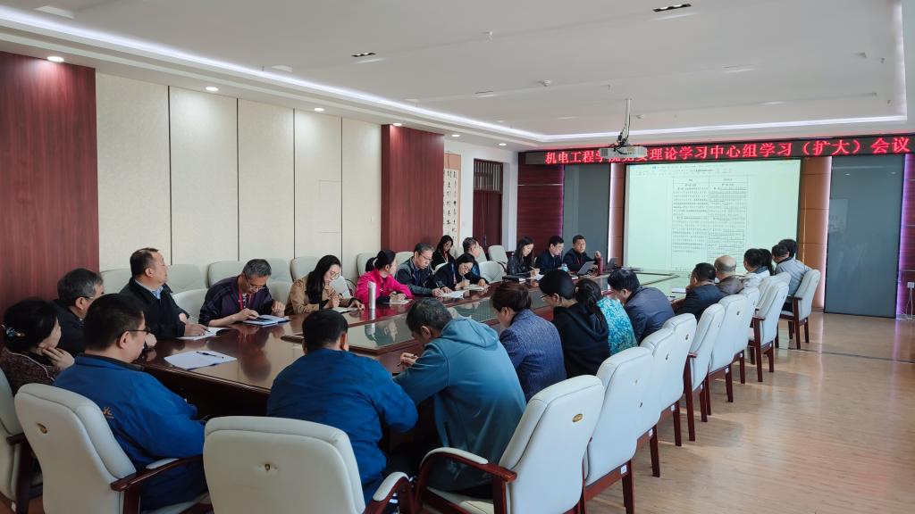 5月10日上午,机电工程学院党委理论学习中心组在成栋楼713会议室举行集中学习(扩大)会议。学院领导班子成员、两委委员、党支部书记、专业(教研室)负责人、各学科(方向)带头人(负责人)参加学习。会议由学院党委书记王佳彤主持。