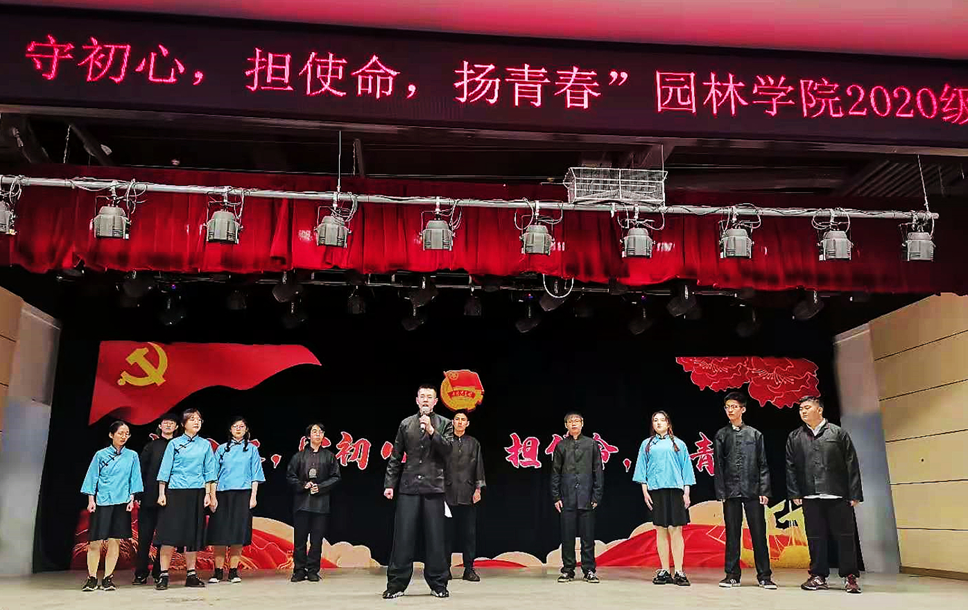 为深入推进以中共党史为重点的“四史”教育,坚决落实学校和学院党委党史学习教育部署,加强2020级新同学班集体的凝聚力建设,5月9日晚,园林学院“学四史、守初心、担使命、扬青春”2020级班级风采大赛在颐丰园四楼大学生活动中心成功举办。比赛中00后的同学们用诗朗诵、话剧、歌曲等形式,展示出班级的红色风采。