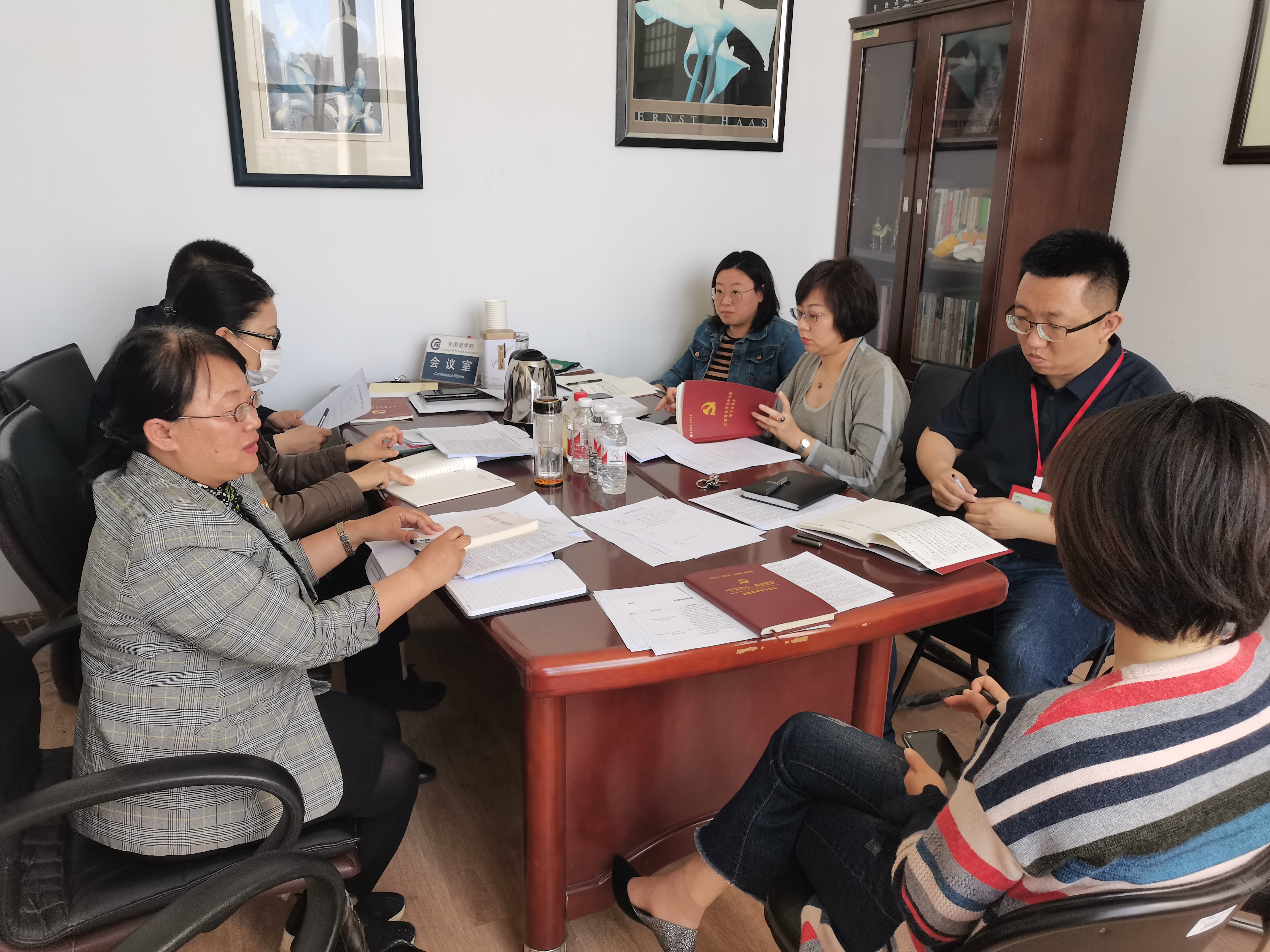 5月17日上午,外国语学院在文博楼1101召开党委理论学习中心组专题学习会,院党委理论学习中心组成员参加学习,会议由学院党委书记王丹主持。