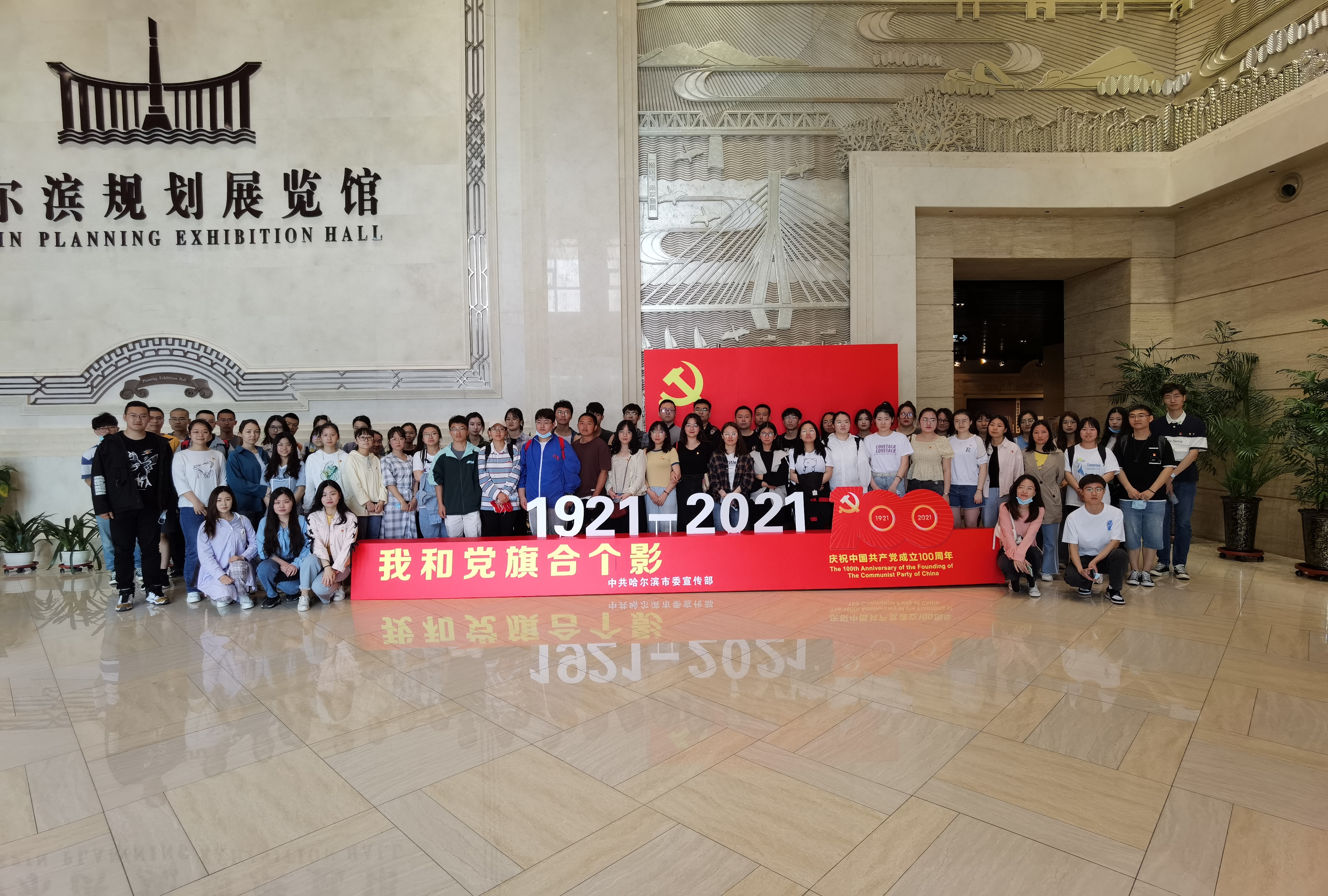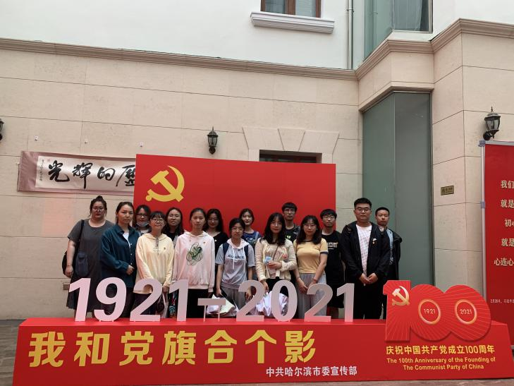 支部全体党员在学校搭建的建党100周年标识合影后出发,前往哈尔滨规划展览馆,在学习参观中了解中国共产党领导哈尔滨市建设的历史。