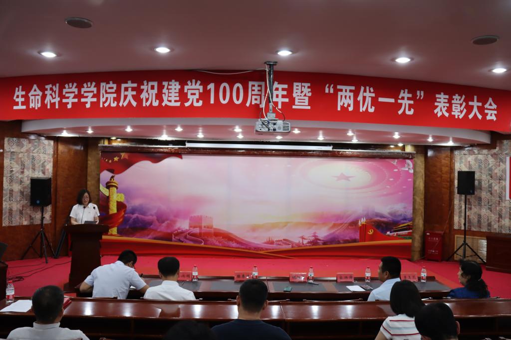 为庆祝中国共产党建党100周年,进一步推动党史学习教育纵深发展,激励广大党员树目标、争先进、创优秀,6月23日下午,生命科学学院在国际会议厅隆重召开庆祝建党100周年暨“两优一先”表彰大会。学院领导班子成员、党委委员、受表彰的先进集体和优秀个人、全体师生党员参加会议。会议由学院党委书记祝胜男主持。