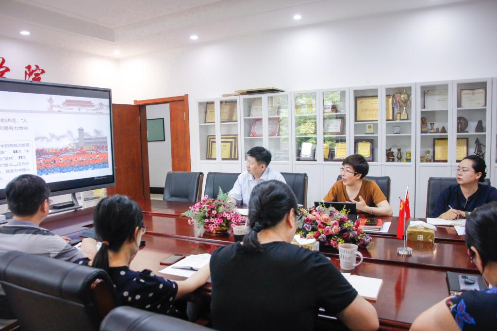 7月7日,国际交流学院直属党支部书记、院长骆颖在学院会议室为全体党员及入党积极分子讲授题为《奋斗百年路 启航新征程——学习习近平总书记在庆祝中国共产党成立100周年大会上的重要讲话精神》的专题党课。