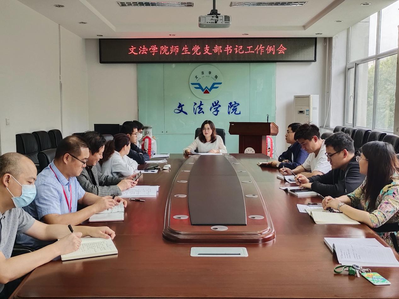 9月15日下午,文法学院党委在学院二楼会议室召开2021年秋季学期党支部书记工作布置会,学院党委书记、党委副书记、各师生党支部书记、全体辅导员老师参加会议,会议由学院党委书记李玉荣主持。