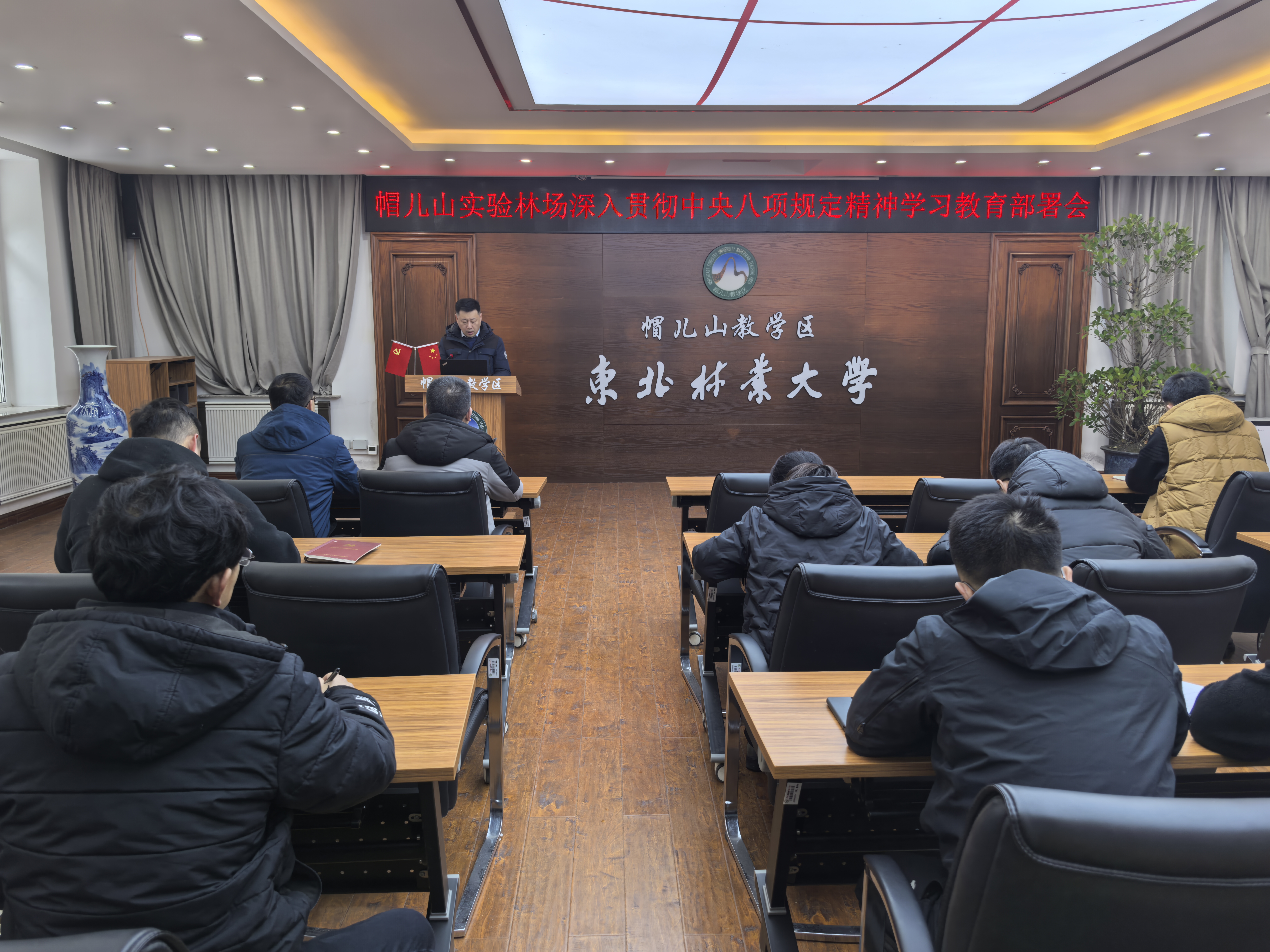 苏永涛传达并领学《中共中央办公厅关于在全党开展深入贯彻中央八项规定精神学习教育的通知》文件精神。副场长张兴东传达并领学《中共东北林业大学委员会关于开展深入贯彻中央八项规定精神学习教育的实施方案》文件精神。