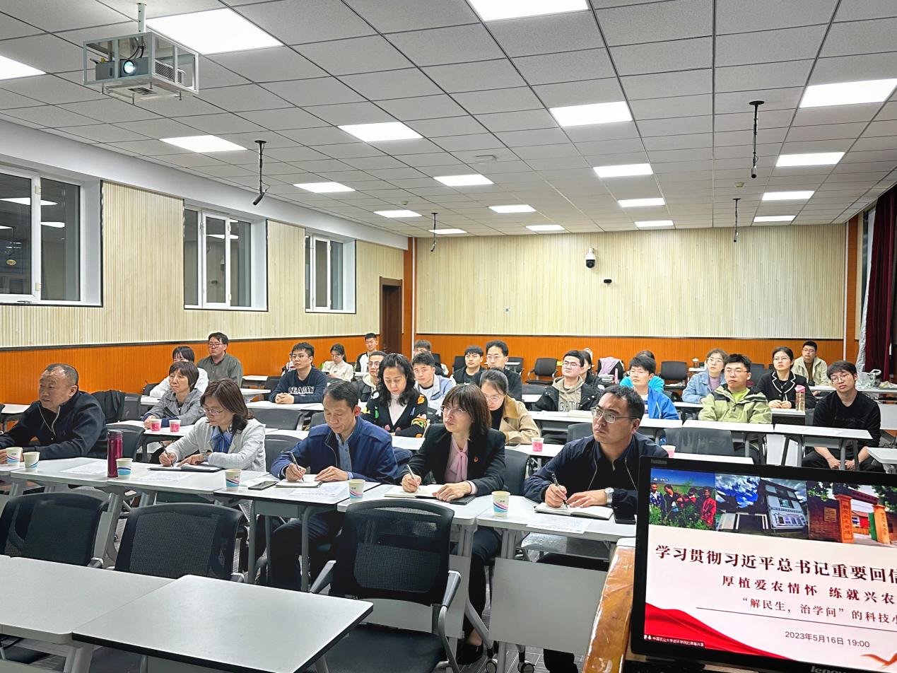 为扎实推进学习贯彻习近平新时代中国特色社会主义思想主题教育,及时跟进学习习近平总书记给中国农业大学科技小院学生的回信精神,5月16日晚,研究生院组织我校5个科技小院的师生代表参加了学习贯彻习近平总书记重要回信精神宣讲会。