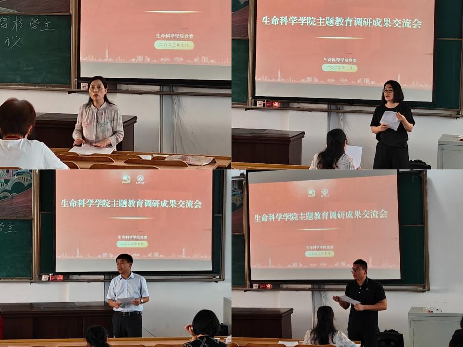为确保主题教育扎实推进、取得成效,7月19日,生命科学学院党委组织开展主题教育调研成果交流会,学院全体教职工参会。学院党委书记祝胜男主持会议。
